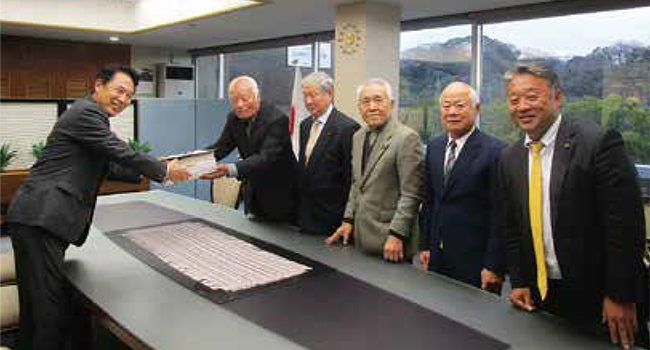 1万2000人の署名を尾花市長に手渡す第8ブロックの連合自治会長たち