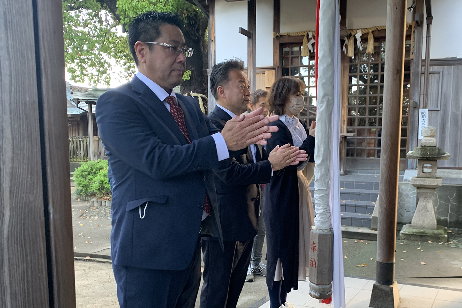 出陣式の当日の朝、戦いの戦勝を祈願のために神明神社に参拝しました。戦いの心構えを伝え、身の引き締まる思いが体を突き抜けました。事務局長の高橋を初め、同志と参拝を致しました。