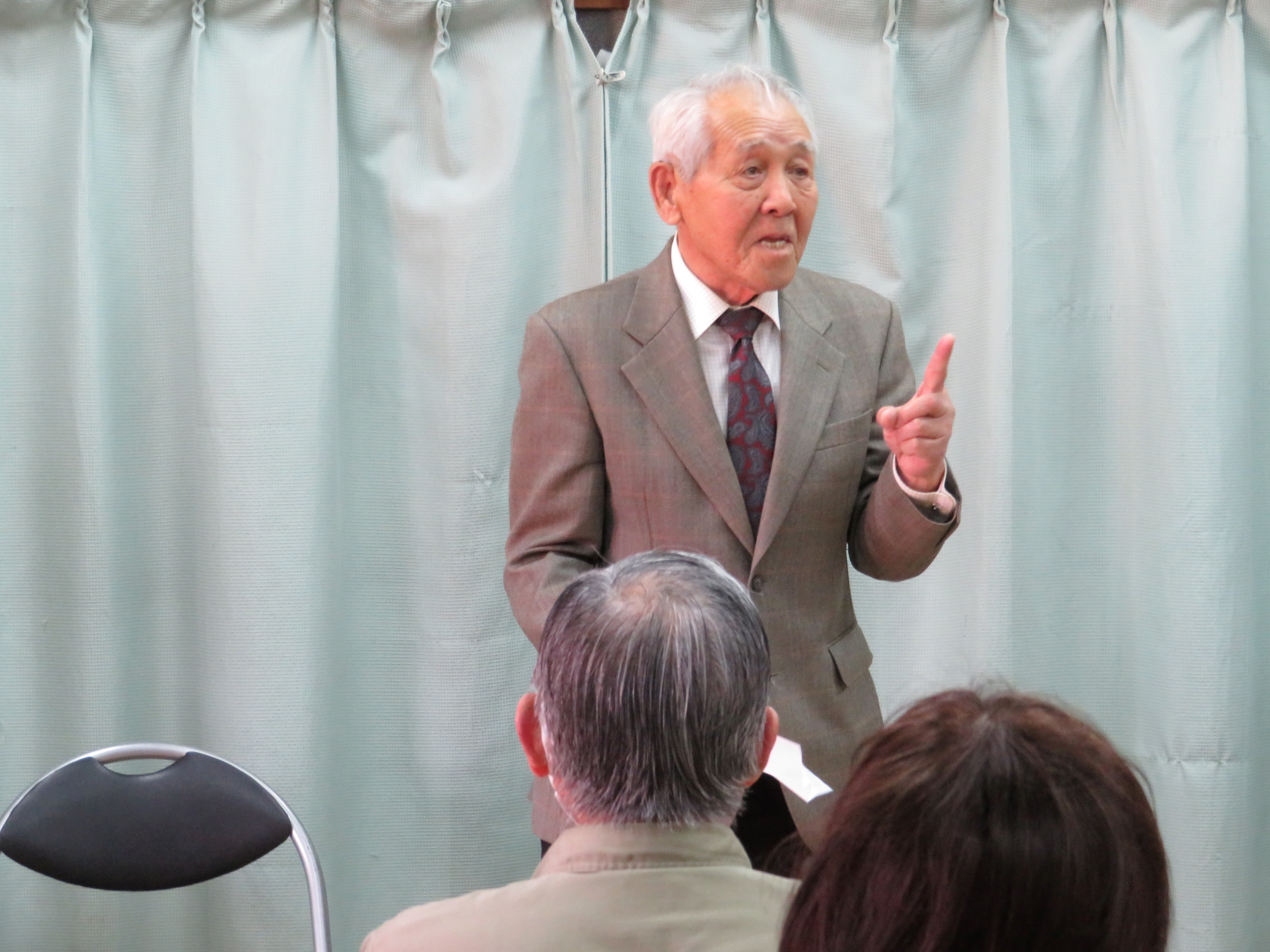 候補者を紹介する今福地区連合自治会長の尾﨑氏。
