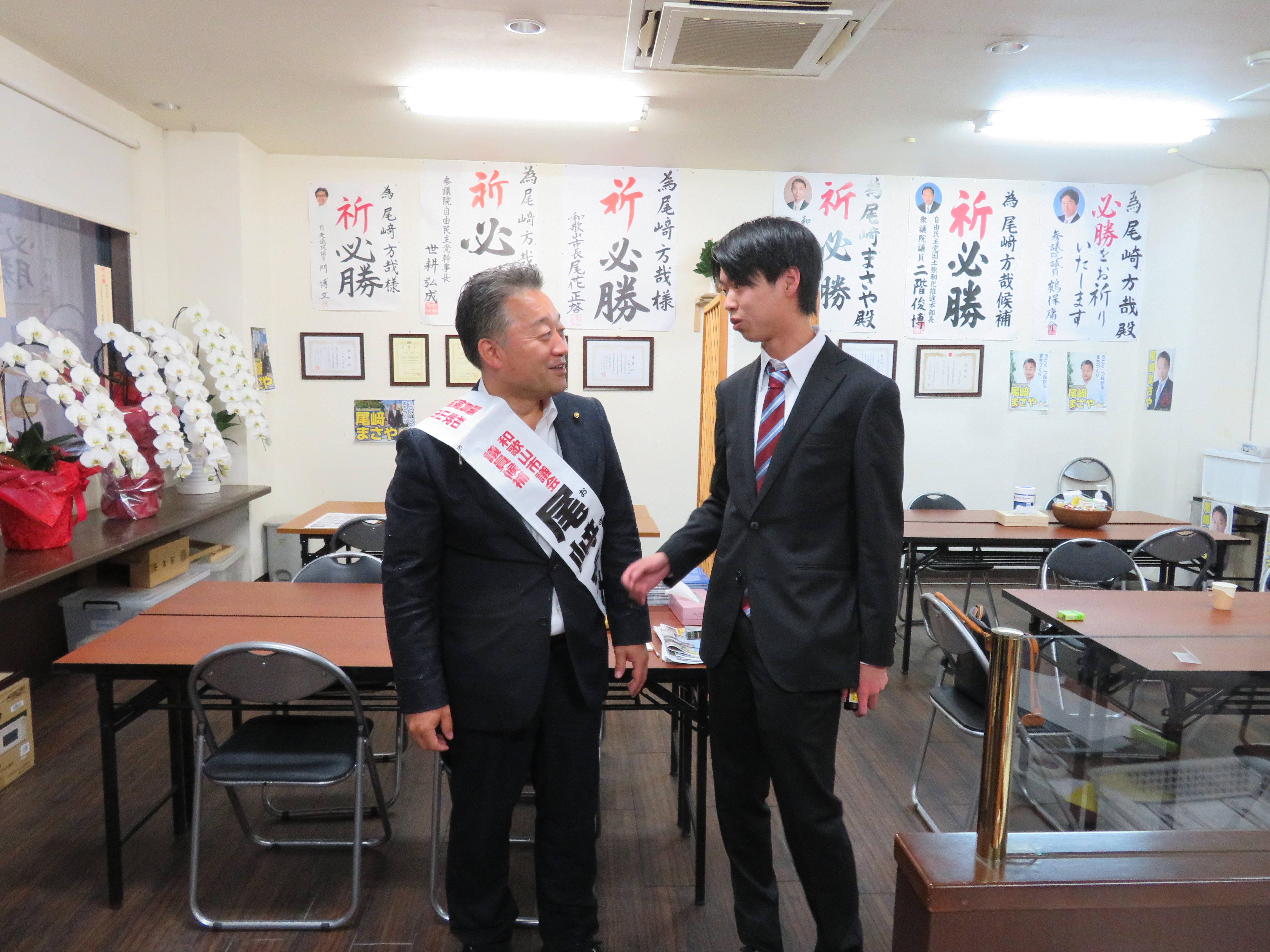 尾﨑まさや候補者が最後の街宣車による活動を終え、帰ってきました。
