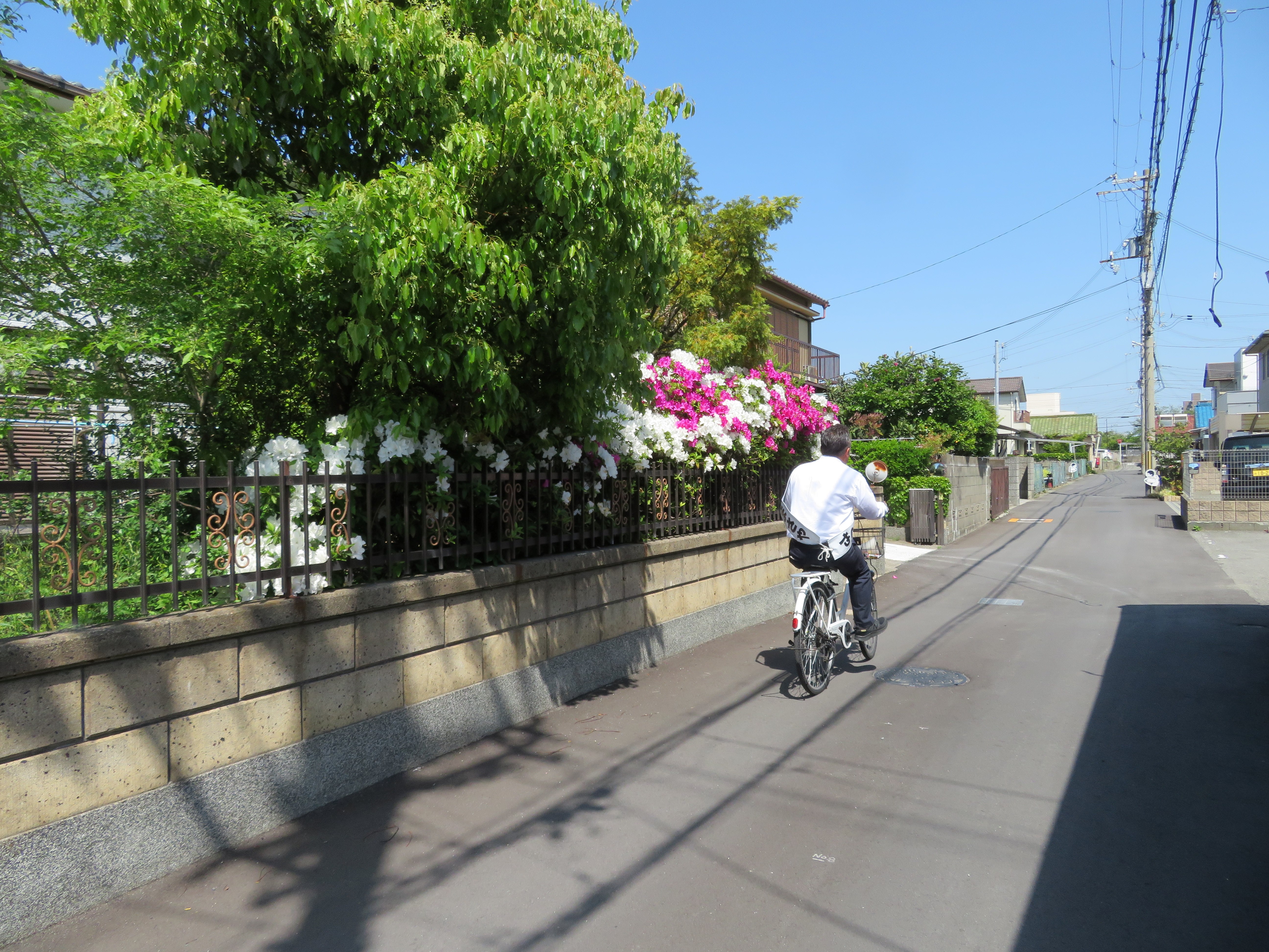 つつじが咲き乱れるお宅を左手に見ながら走行中。